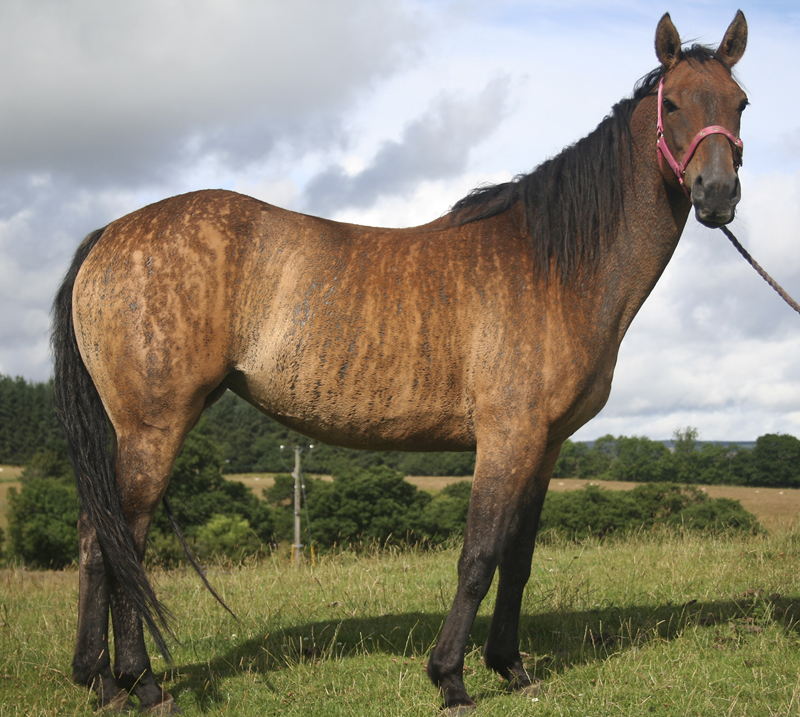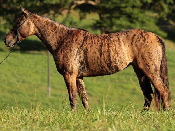 BR1) elnevezést kapta, viszont ez a gén okozta fenotípus különbözik a többi “klasszikus” brindle mintázattól. A vertikális irányú csíkokat a csíkok helyén lévő szőrzet eltérő textúrája, esetleg eltérő pigmentsága okozza a többi normál szőrszálhoz képest. X-kromoszómához kötött szemi-domináns öröklésmenetű gén: a heterozigóta kancák, akiknél csak az egyik X kromoszómán található a BR1-mutáció, rendelkeznek a csíkos jellegű fedőszőrmintázattal, míg a homozigóta kancák és a mének (akiknél ugye csak 1 X-kromoszóma van jelen) nem mutatják ezt a mintázatot, sörényük és farokszőrzetük viszont gyérebb, mint a mutációt nem hordozó társaiké. Mivel a mintázat javarészt a szőrzet szerkezetéhez kötött, különbség adódik a hosszú téli és a rövid nyári bunda megjelenése között; télen a fedőszőr csíkjai miatt jellegzetes moth-eaten (“molyrágta”) megjelenést kölcsönöz a lónak.