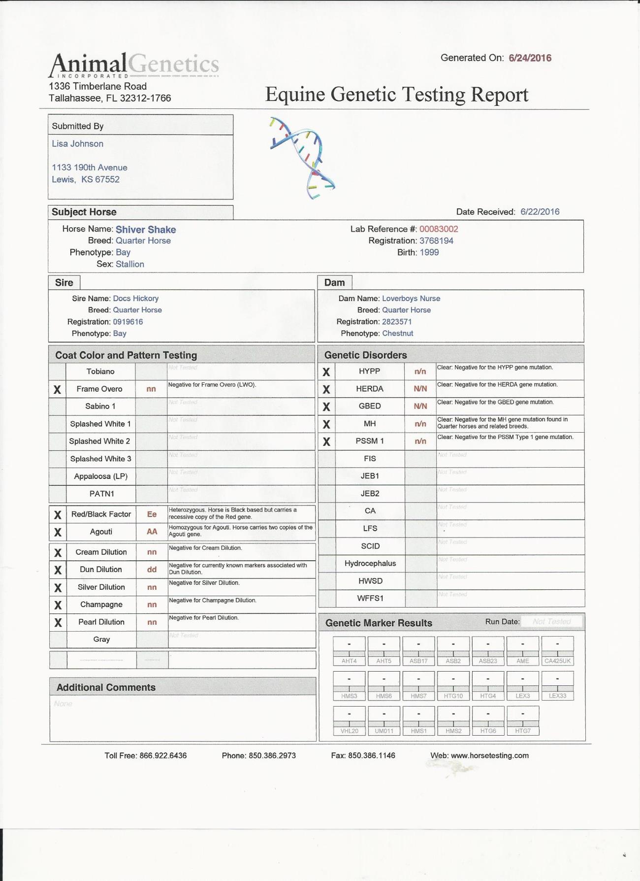 A kötelező tesztek abban is segítik a tenyésztőket, hogy ezeknek az eredménye publikus számukra. Az AQHA esetében az 5 panel teszt eredménye egy regisztráció után kikérhető, ha ismerjük a mén pontos regisztrált nevét és/vagy regisztrációs számát. Az APHA esetében a panel tesztek eredményét csak a megfelelő tagsággal rendelkezők tudják kikérni. Fontos megjegyezni, hogy mind az AQHA, mind az APHA esetében csak az általuk meghatározott laborok tesztjeit fogadják el, így ha teszt eredményt látunk erre is érdemes odafigyelni és a tenyésztő szervezetek honlapjain tájékozódni (apha.com és aqha.com). Amennyiben Paint horse esetében, nincs aktív tagságunk és bizonytalanok vagyunk érdemes lehet elkérni a tesztek eredményeit a mén tulajdonosától.