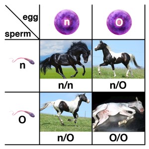 A fehér színmegnevezéstől való viszolygásunk onnan ered, hogy a nem lovas emberek a teljesen kiszürkült ezüstszürkét rendszeresen fehér lónak nevezik. Az előző kérdésnél tárgyalt színek esetén azonban láthattuk, hogy léteznek eltérő színű lovak, melyek se nem ezüstszürkék, se nem albínók, sem cremellók. A már bemutatott White spotting mutációk teljesen fehér egyedeket eredményeznek, melyekre jelenleg még nincs magyar szavunk a lovas világban. Az ilyen lovak szintén rendelkeznek a három alapszín valamelyikével, a tarka mintázatot okozó gén viszont teljesen befedi a lovat, így egy nagy egybeérő fehér folt lesz jelen. Így nemcsak a KIT-génnél, de a különböző tarka géneknél is létrejöhet ilyen szín, amikor többféle tarka gén egyszerre öröklődik és fejeződik ki, 100%-ban “tarka” lovat eredményezve. A White spotting megnevezésű mutációkat korábban Dominant White génnek nevezték, utalva mind az öröklésmenetre, mind a színre. Így a fehér lószínmegnevezés a leghelytállóbb, ha ezeket a lovakat fenotípusosan (megjelenésre) szeretnénk jellemezni, ám fontos észben tartani, hogy a fehér szín mögött többféle genetikai ok áll, és szerencsésebb gyűjtőfogalomként kezelni.